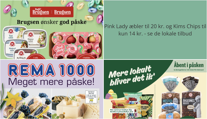 Min Købmand tilbyder Kims Chips, Snacks eller Nødder i flere varianter til en pris på 14 kr. pr. pose. Der er dog en begrænsning på 4 poser pr. kunde pr. dag. Tilbuddet gælder fra fredag den 27. marts til lørdag den 4. april.