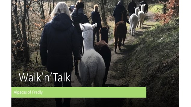 Walk and Talk med alpaka - for mænd og kvinder, er for voksne i regi af Foreningen Jordforbindelsen.
